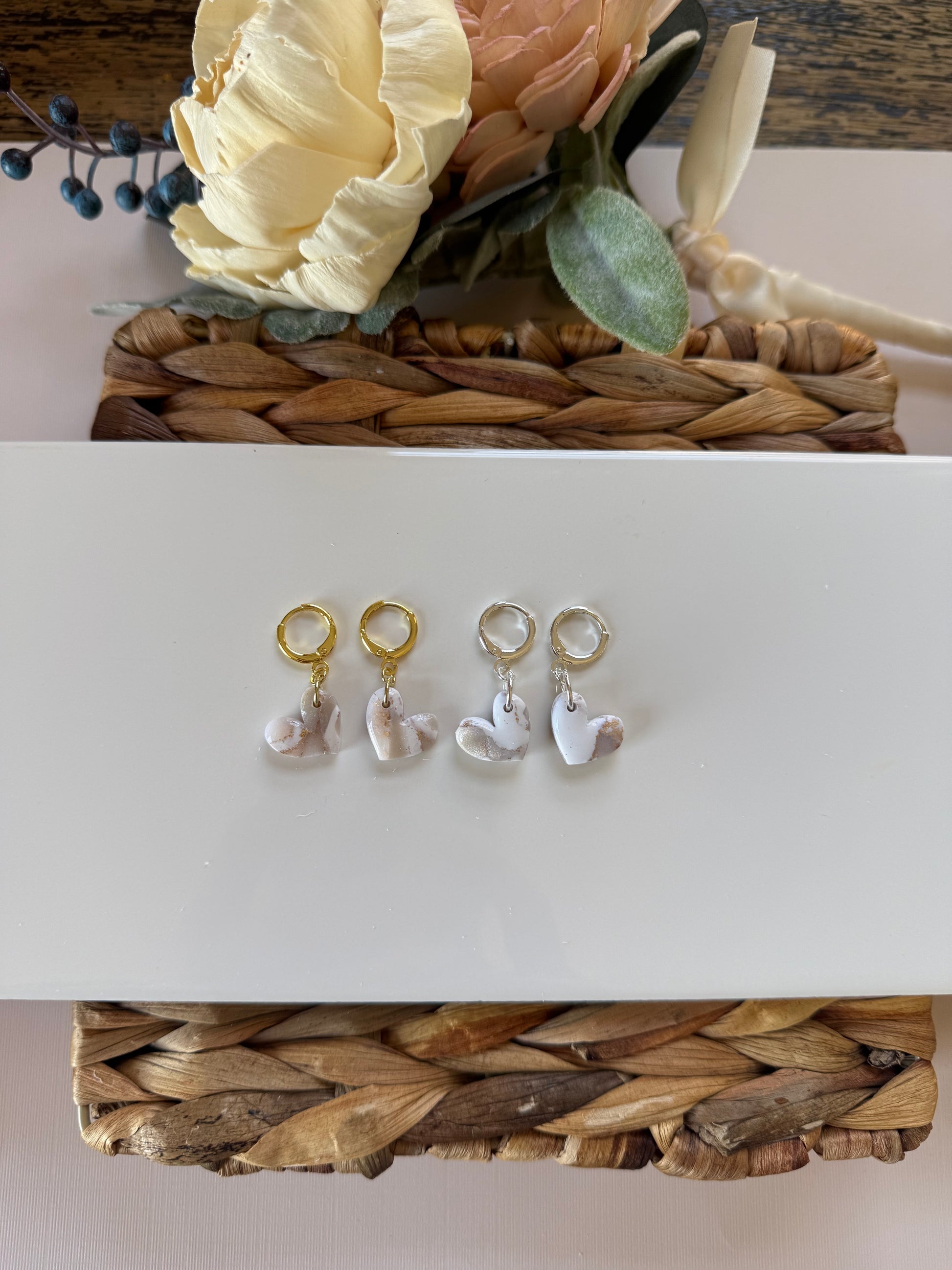 White Marble Heart Dangle